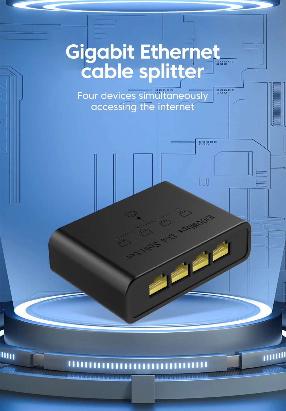 Elough 5-портов гигабитов мрежов суич (100/1000Mbps) – високопроизводителен разширител за рутери, компютри и други RJ45 устройства. Суичът позволява свързване на един гигабитов или 100M RJ45 кабел и разпределяне на сигнала към четири порта, които могат да се използват едновременно от различни устройства като компютри, камери, рутери, принтери, интернет телевизори или сет-топ боксове. Суичът е изработен от ABS материал за здравина и дълготрайна употреба. В комплекта е включен 0,8-метров Type-C кабел за лесна и бърза връзка. Това решение позволява мултифункционална мрежова свързаност в едно устройство, идеално за домашни и офисни мрежи.