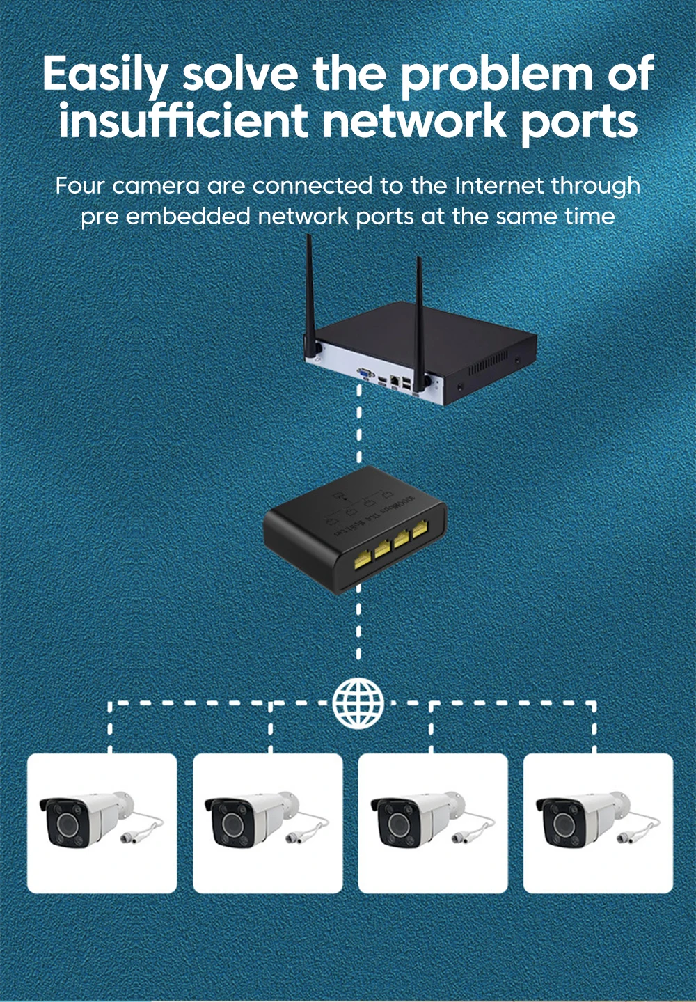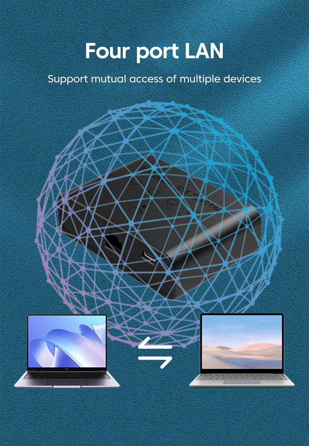 – Позволява едновременно свързване на четири устройства – компютри, рутери, камери и принтери – за надеждна и бърза мрежова свързаност у дома или в офиса.