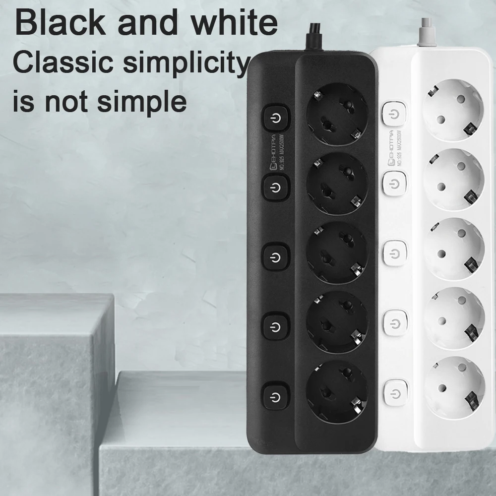– Разклонител с EU щепсел и 5 AC контакта, подходящ за дома и офиса.