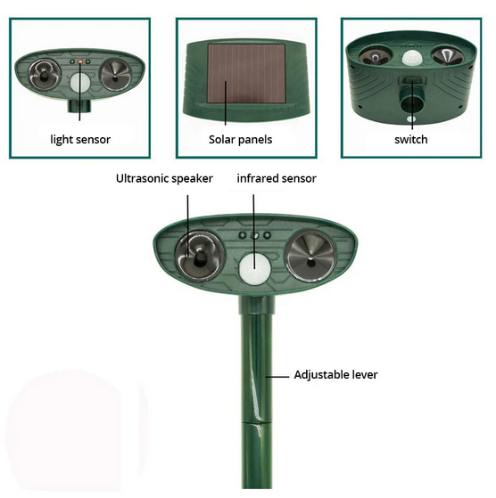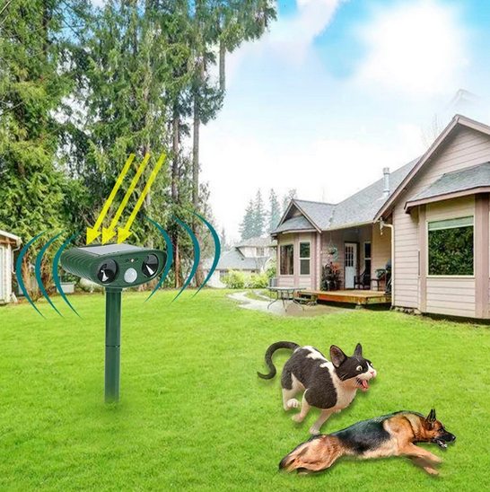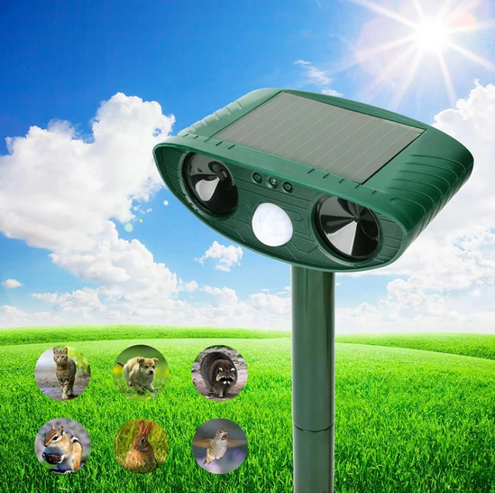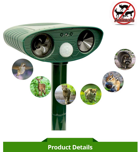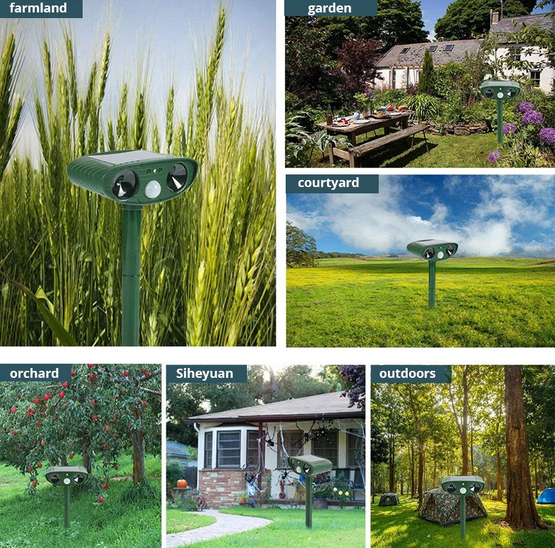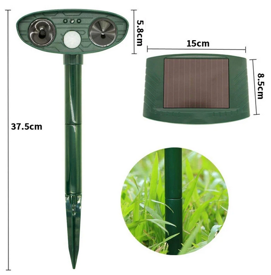 – Този соларен ултразвуков репелент е ефективно решение за прогонване на нежелани животни като котки и кучета от вашата градина, двор или ферма.