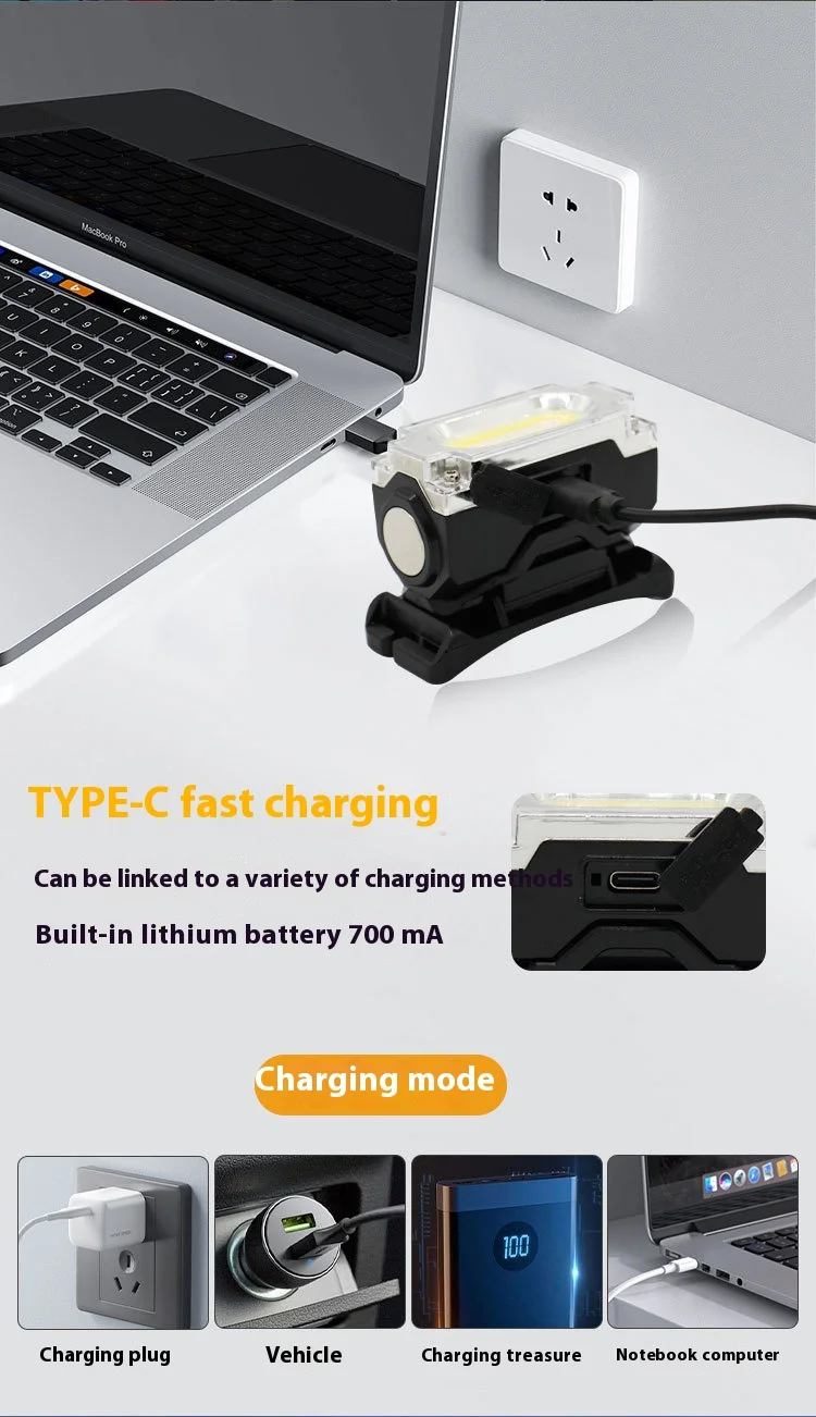 Ярък магнитен LED челник 200 lm Клипс за шапка Type-C зареждане – за туризъм, къмпинг и работа