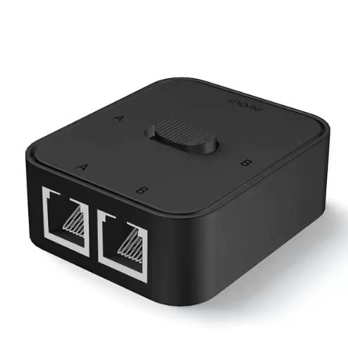 Този 2-портов гигабитов мрежов суич RJ45 е практично решение за превключване между две мрежови връзки без нужда от захранване. Поддържа скорости до 1000 Mbps и позволява конфигурация 2 входа / 1 изход или 1 вход / 2 изхода. Устройството е ръчно управлявано, изработено от здрав ABS и метал, с дълъг експлоатационен живот над 100 000 превключвания. Идеално е за дом, офис или мрежови тестове, когато е необходимо лесно и надеждно превключване между вътрешна и външна мрежа.