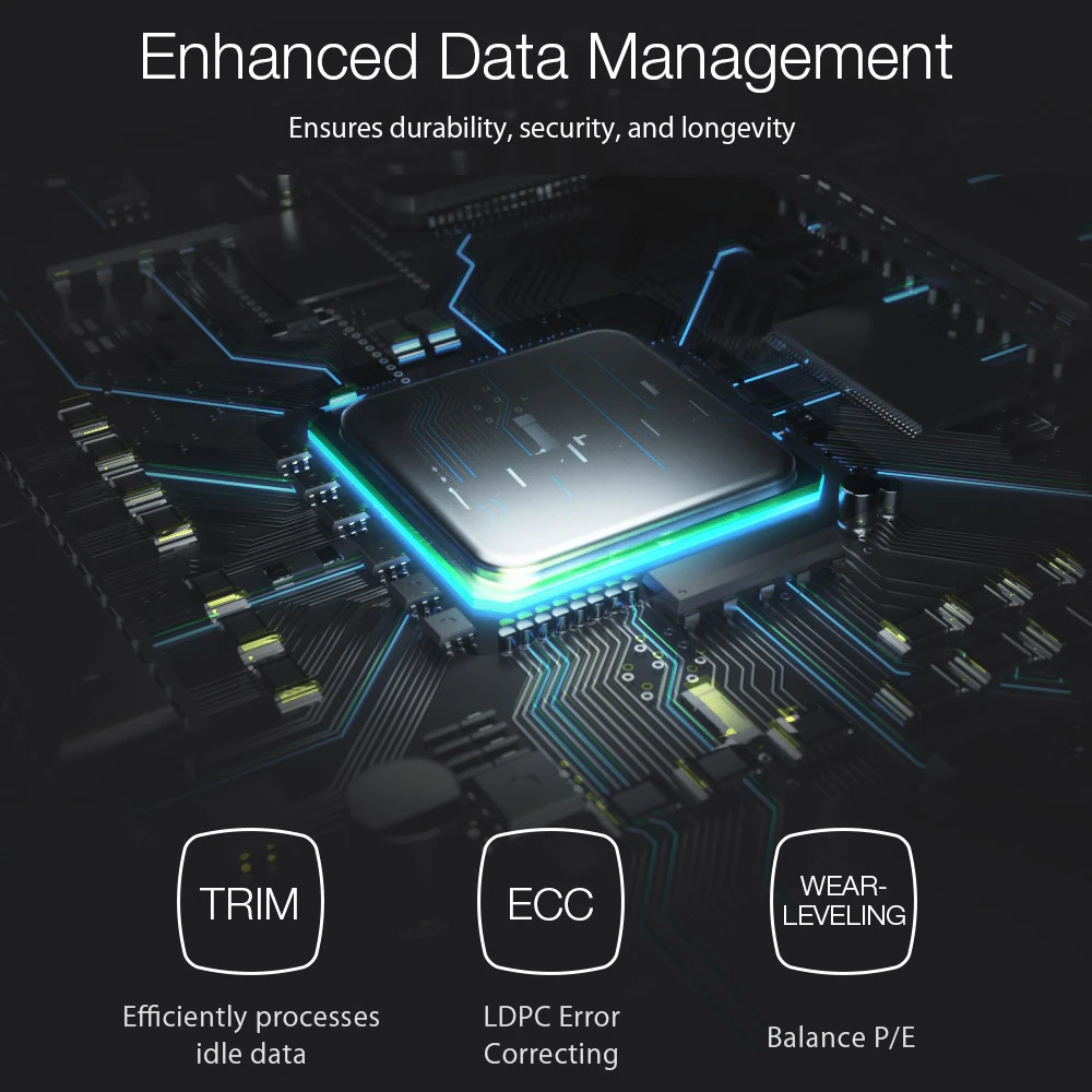 Подобрено управление на данните – осигурява трайност, сигурност и дълъг живот, ефективно обработва неактивни данни, LDPC Коригиране на грешки, Баланс P / E