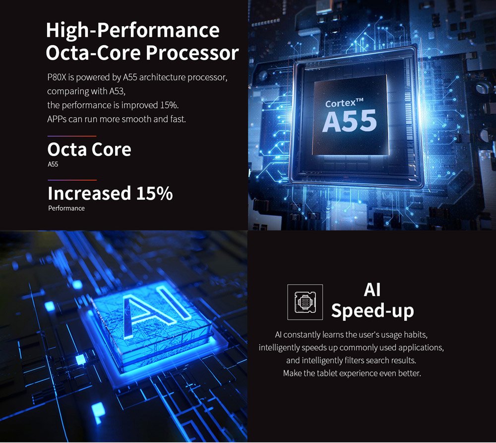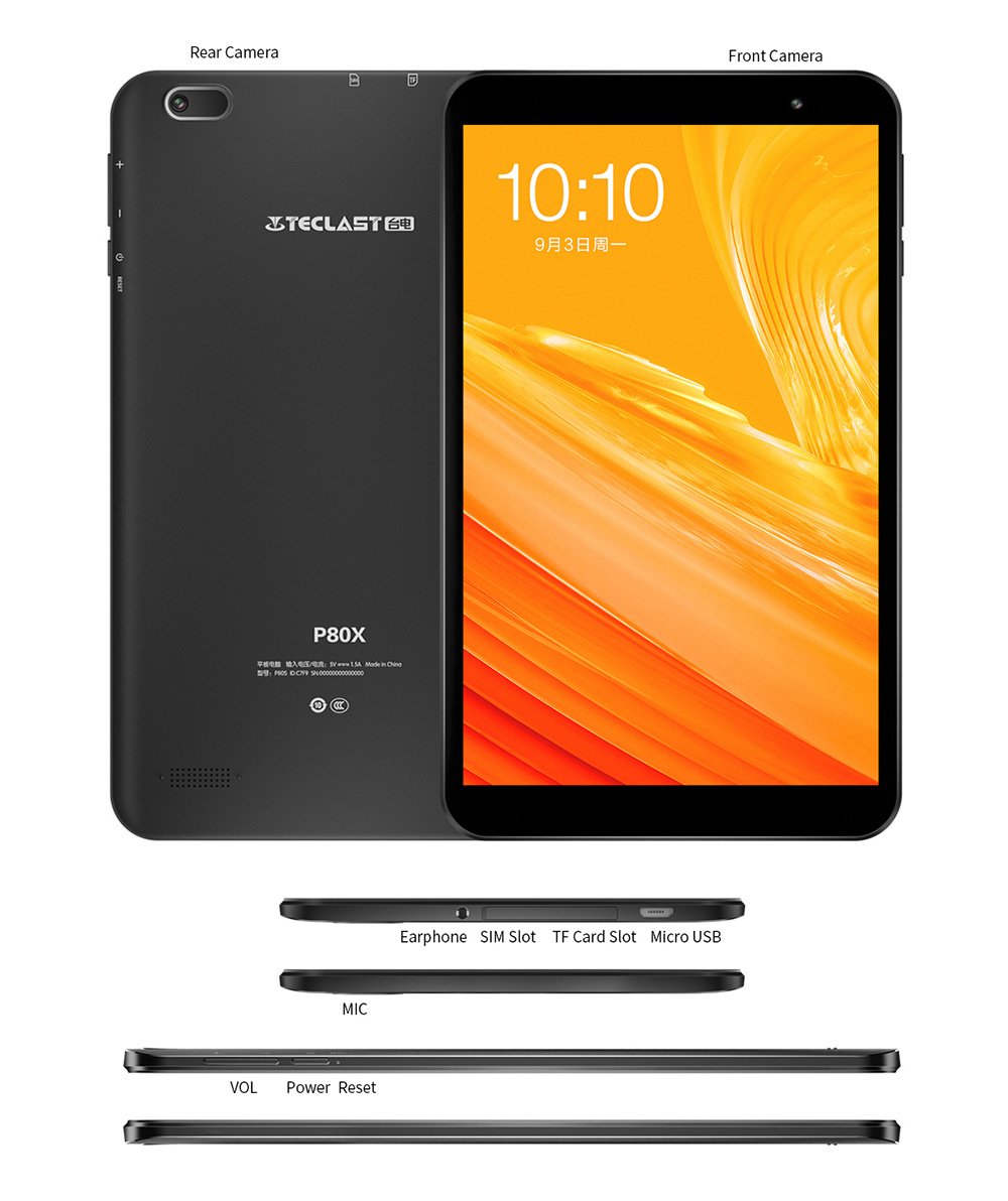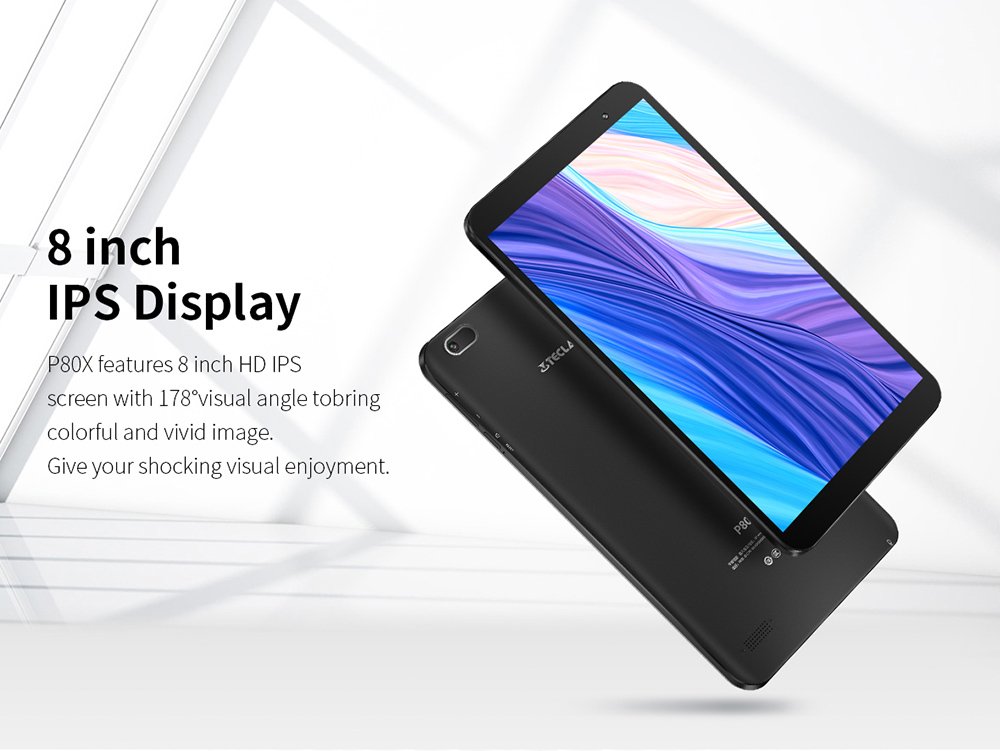 – Таблетът Teclast P80X е компактен и функционален 8-инчов модел с HD IPS дисплей (1280×800), подходящ за сърфиране в интернет, гледане на филми и използване на приложения.
