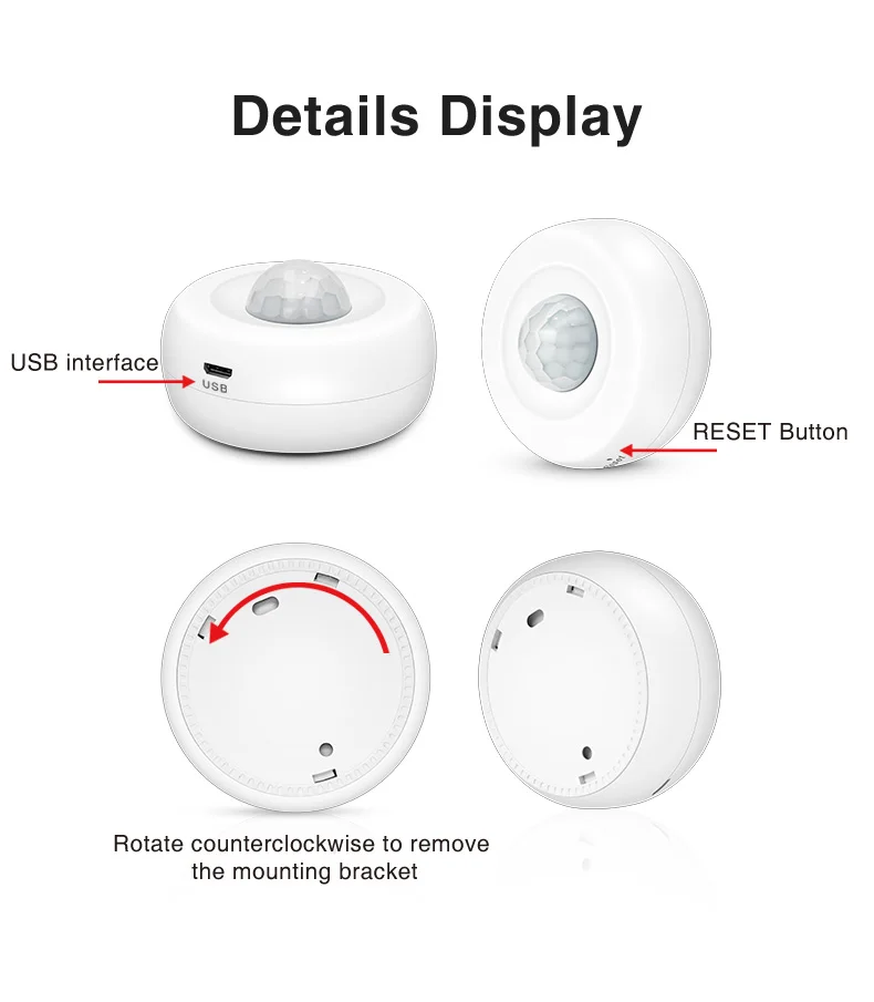 – Tuya WiFi LED осветление с PIR сензор за движение е интелигентен инфрачервен пасивен детектор за смарт дом, съвместим с приложението Smart Life, Alexa и Google Home.