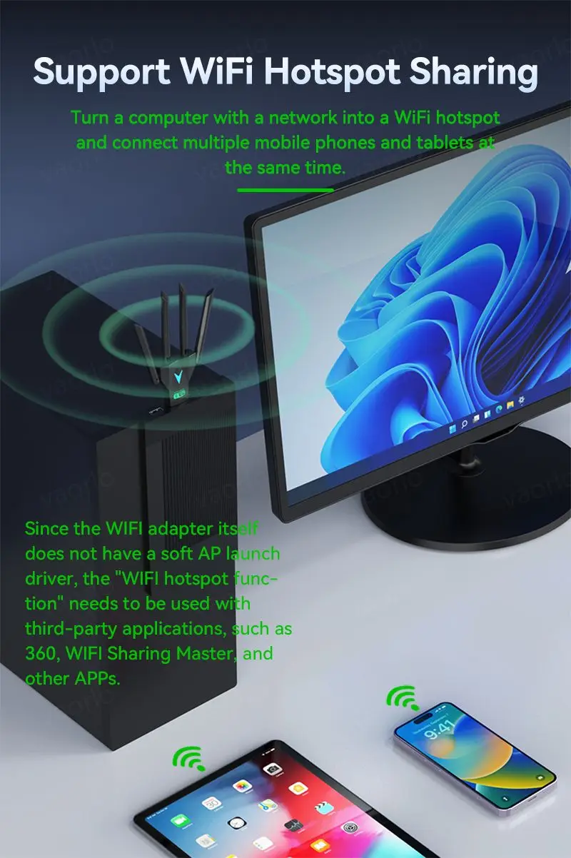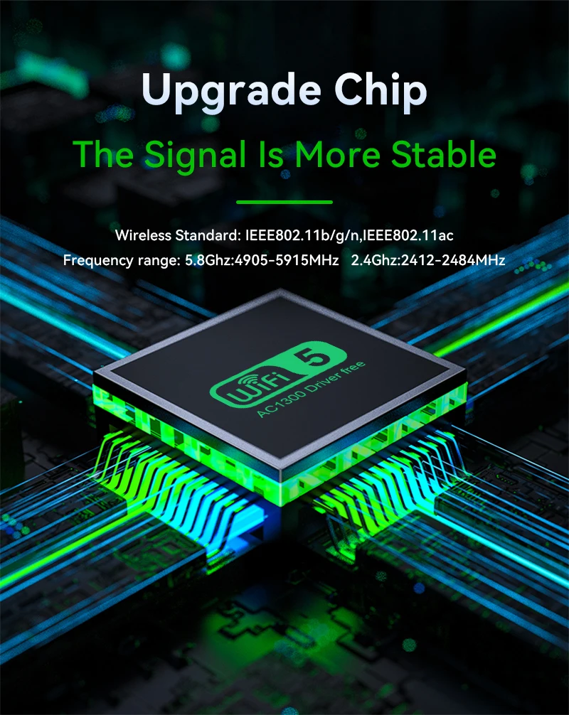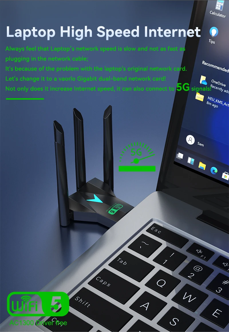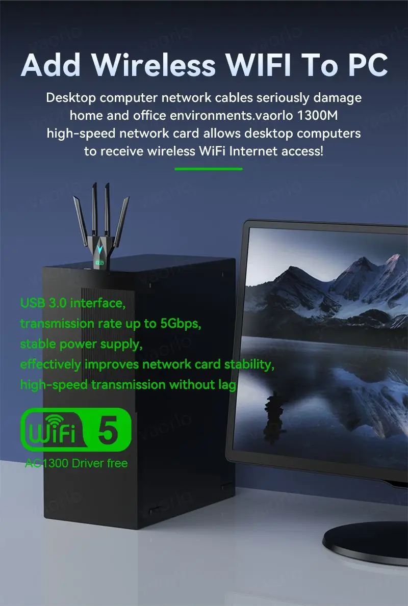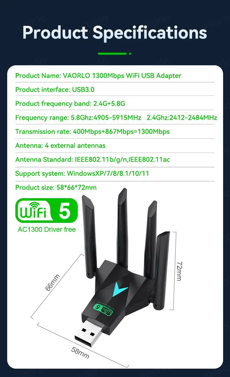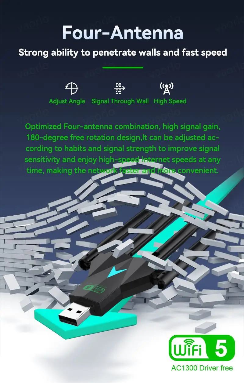 – 1300Mbps Dual Band WiFi USB адаптер предлага бърза и стабилна интернет връзка за компютър и лаптоп.