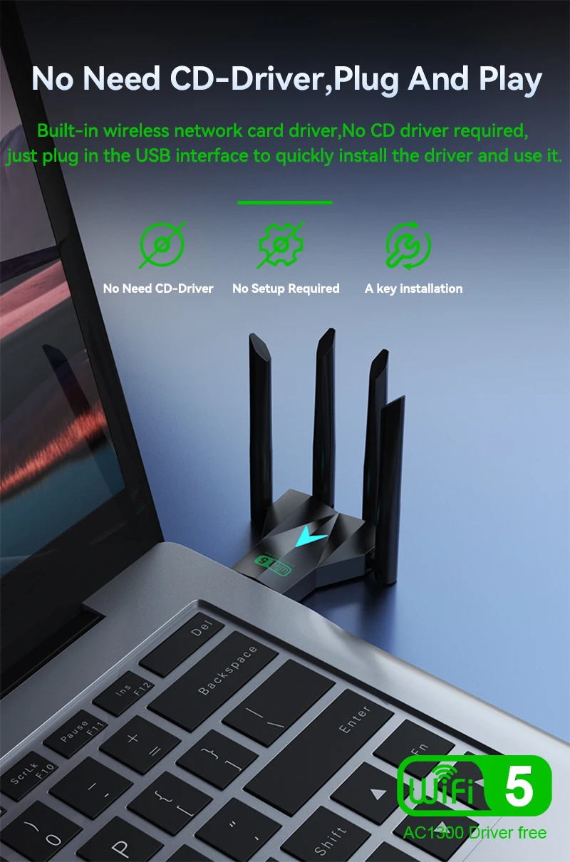 – С дизайн с 4 регулируеми антени и USB 3.0 интерфейс, устройството осигурява силен сигнал, добра проникваща способност през стени и лесна инсталация без нужда от драйвери.