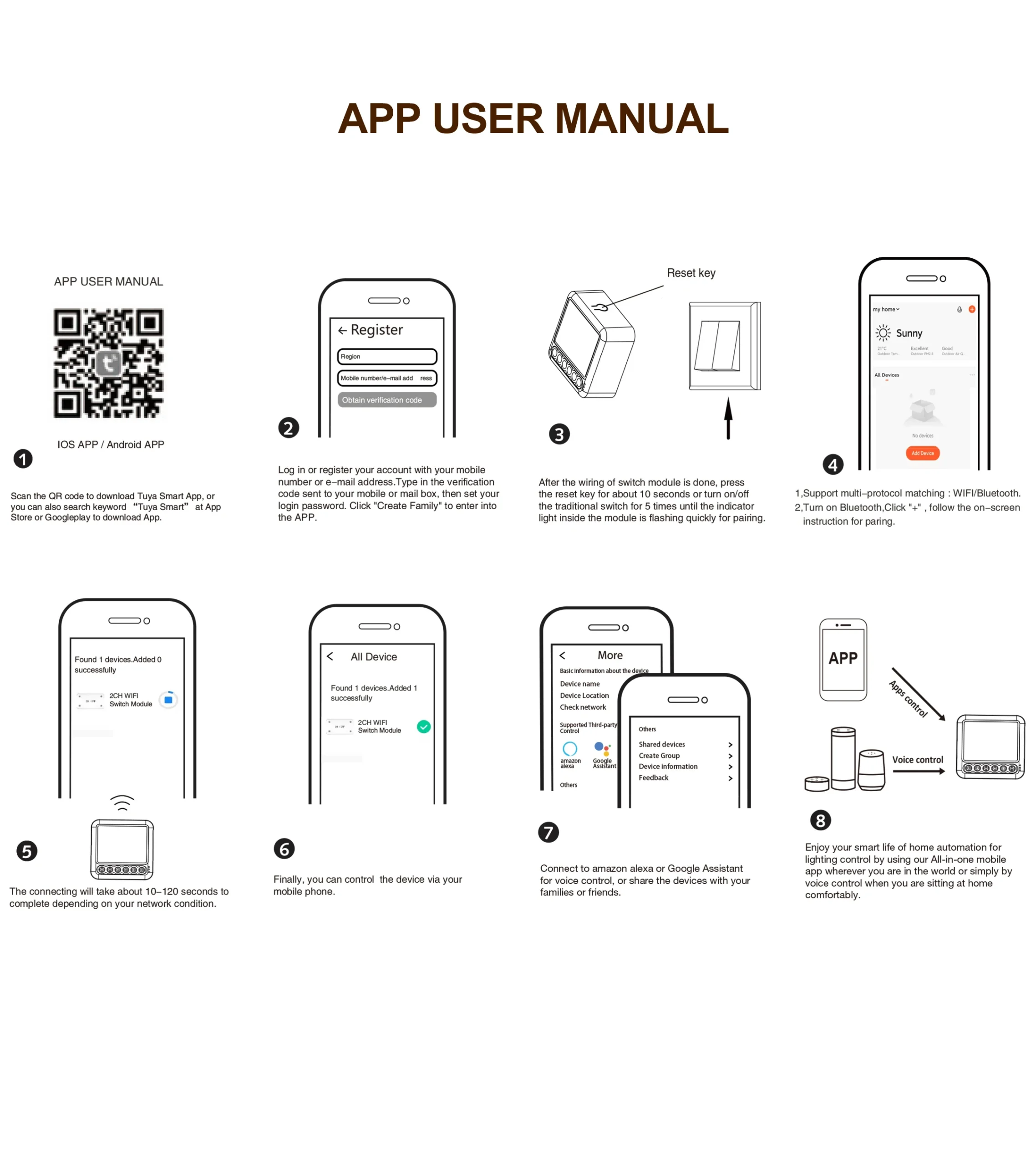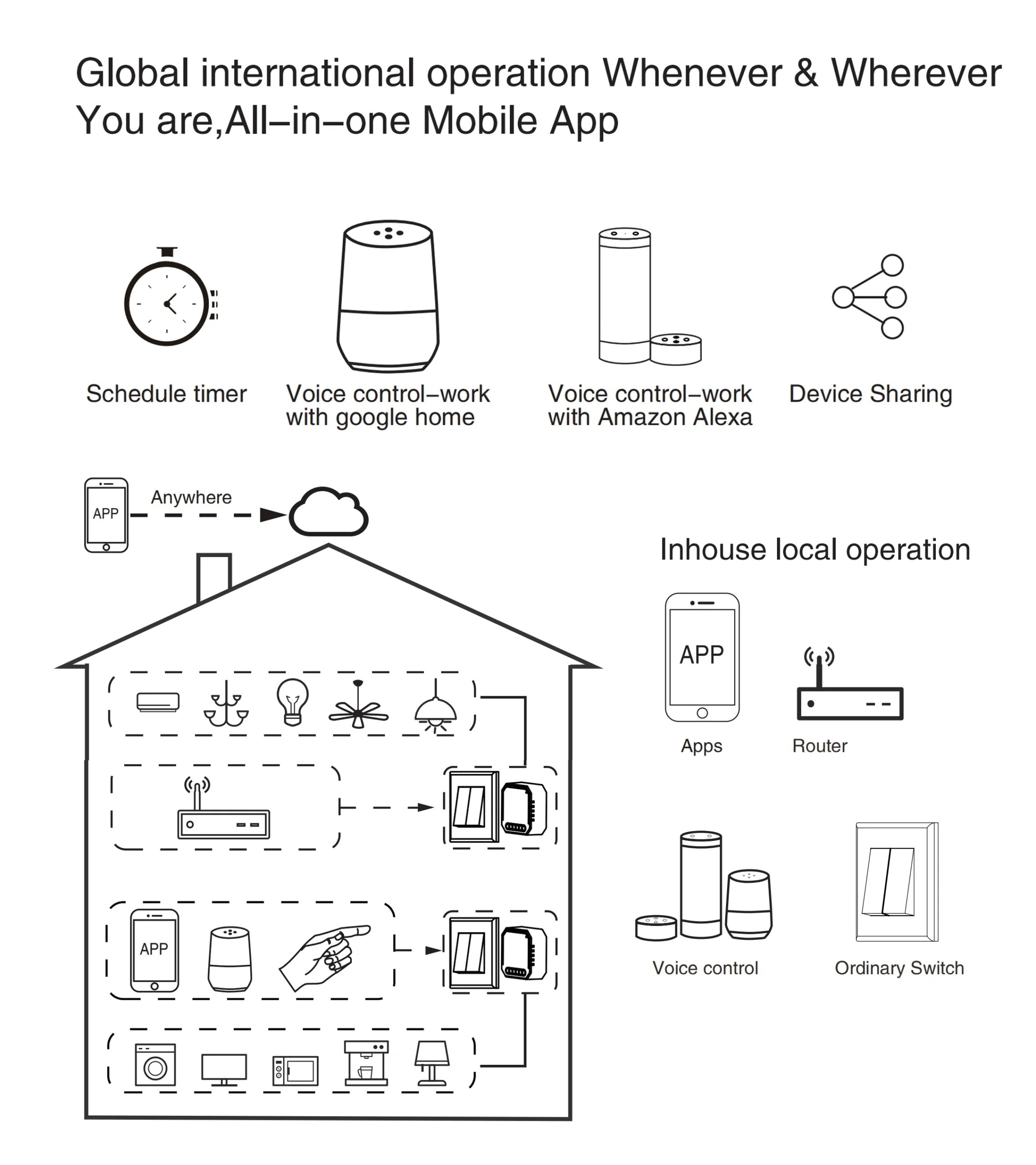 – Поддържа таймери, смарт сцени, групово управление и възстановяване на състоянието след прекъсване на тока, осигурявайки удобство и енергийна ефективност в дома.